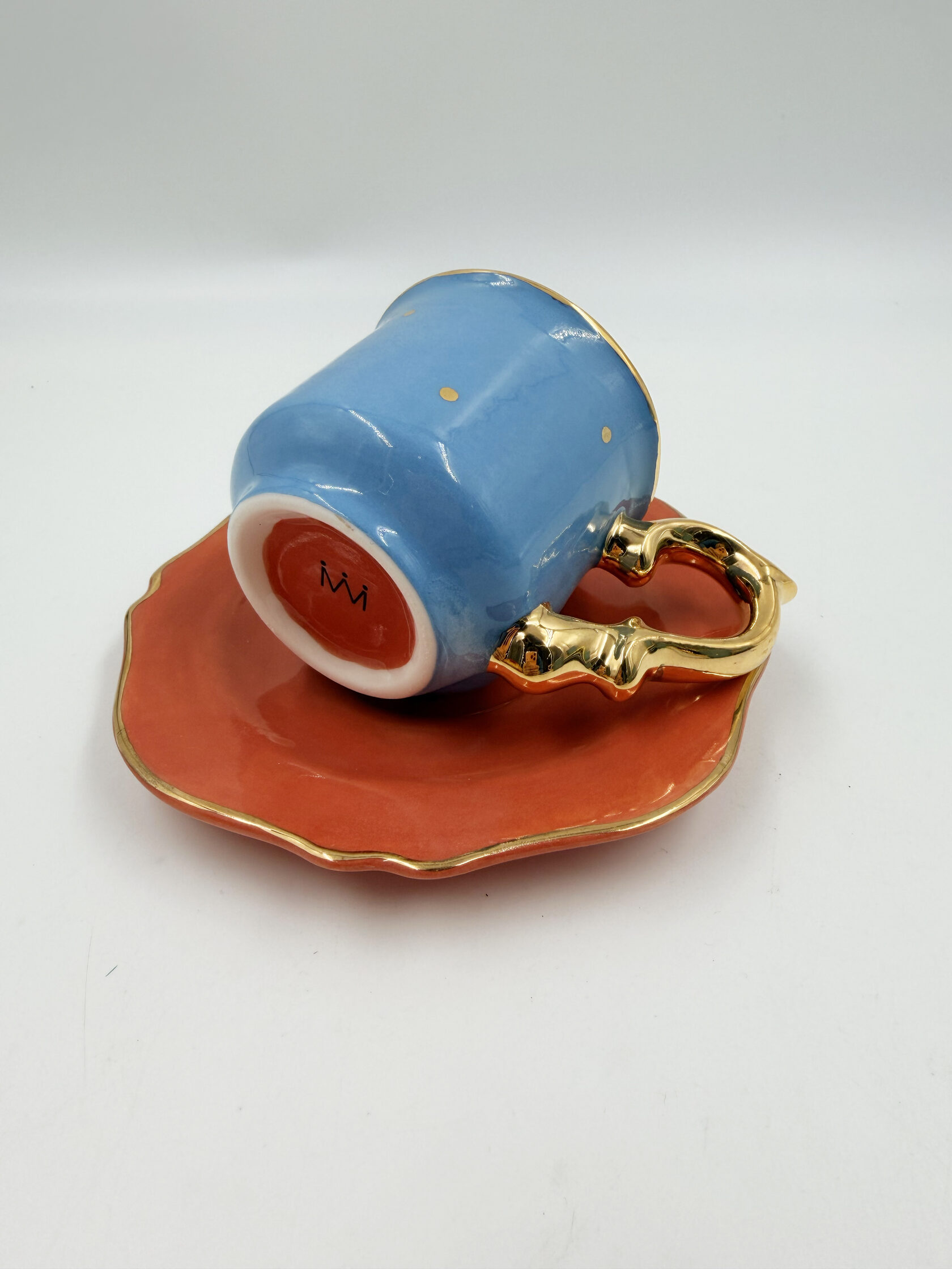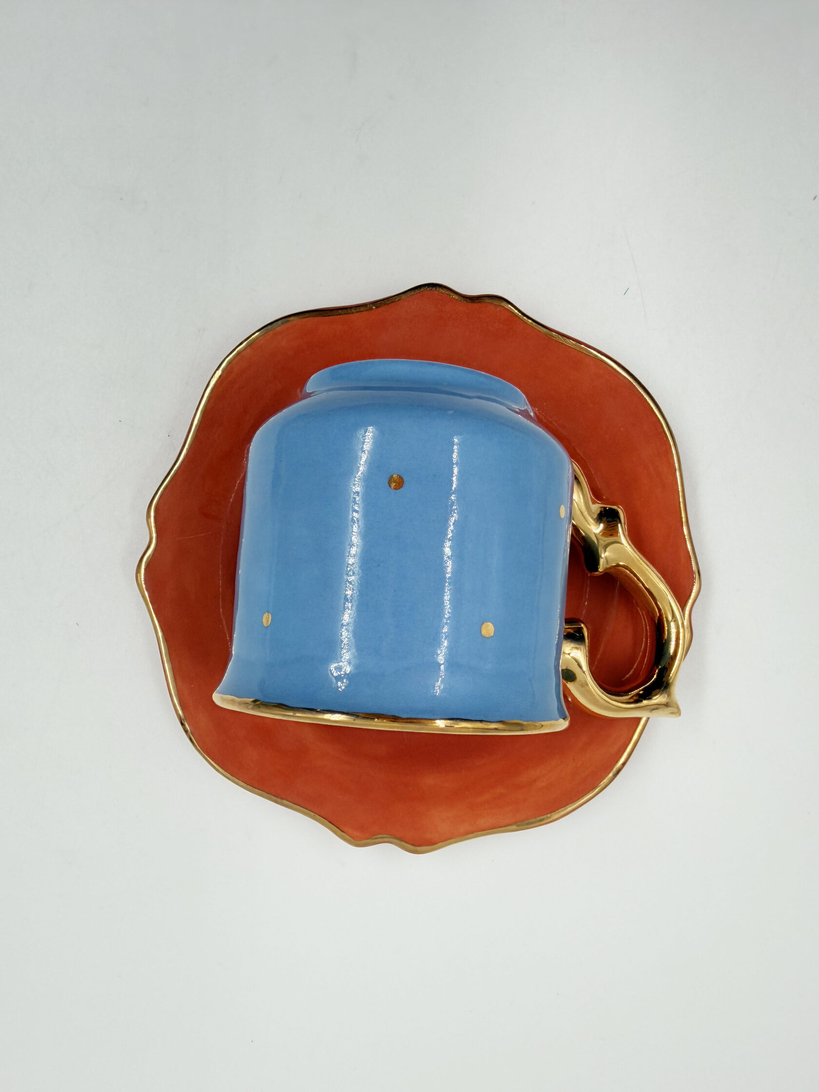 Фарфоровая легкая кофейная пара объемом 125 мл Каждая горошинка нарисована вручную. Элементы покрыты настоящим золотом. Можно мыть в посудомоечной машине, но нельзя ставить в микроволновую печь. В комплекте идет фирменная подарочная упаковка.