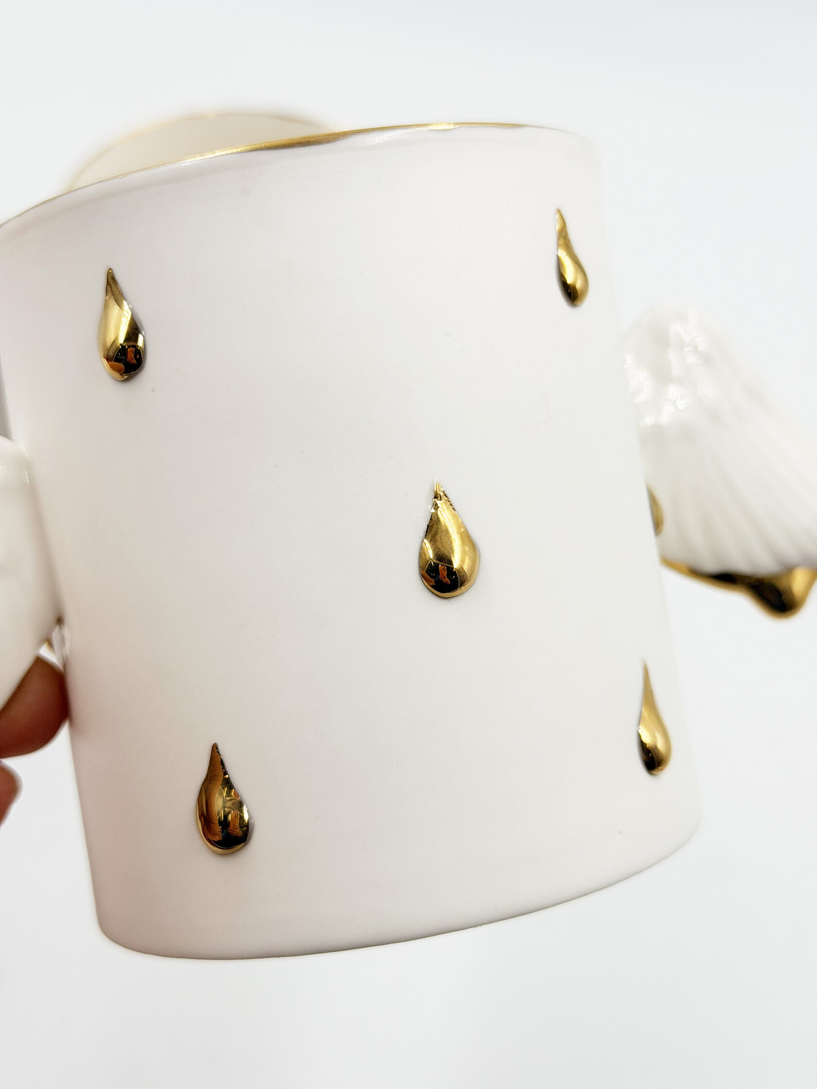 Фарфоровая легкая кружка объемом 370 мл Ручка полая. Каждая точечка покрыта тонким слоем настоящего золота. Часто очень на маркетах слышу два вопроса: